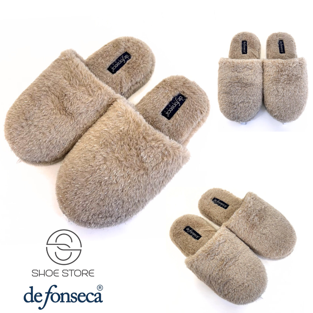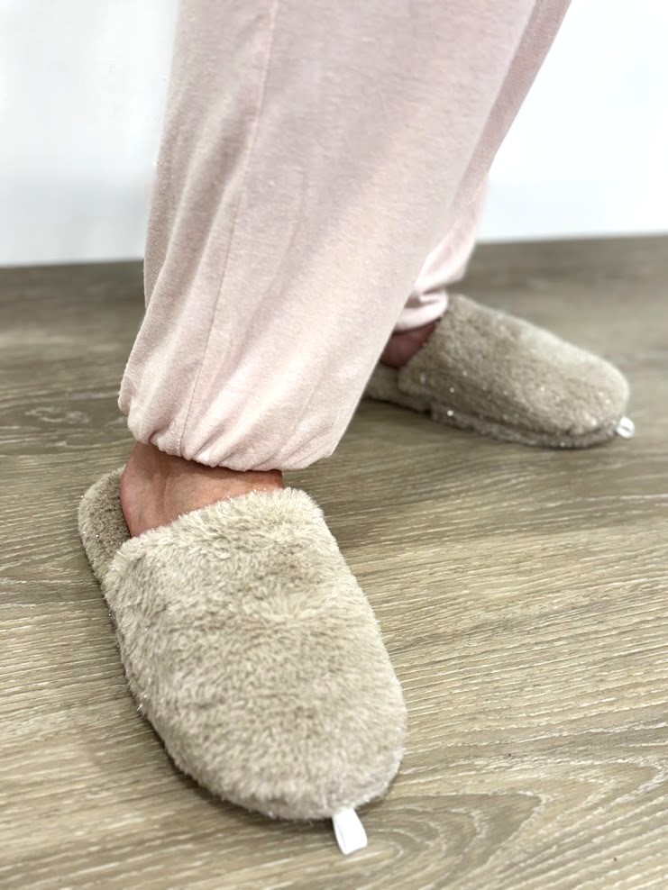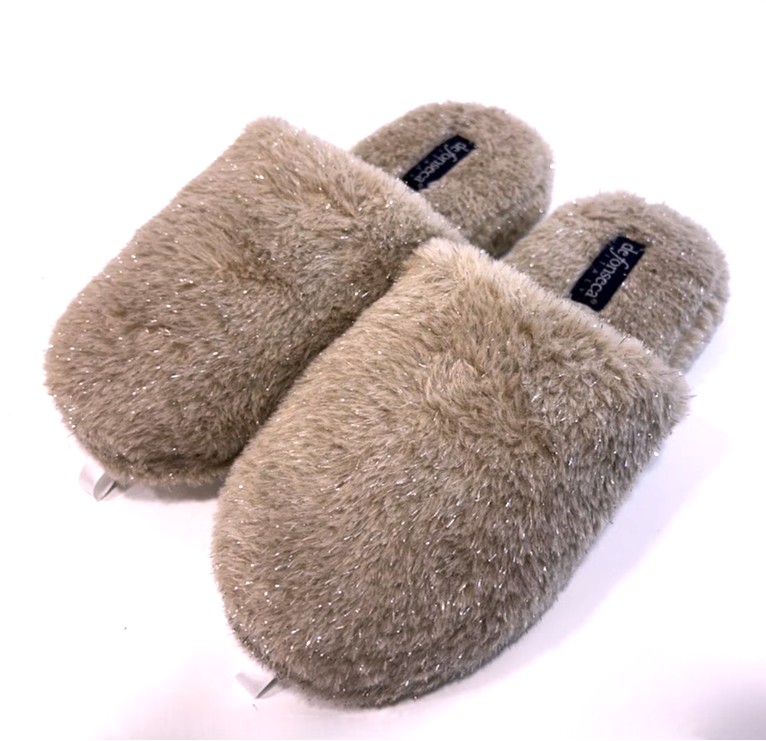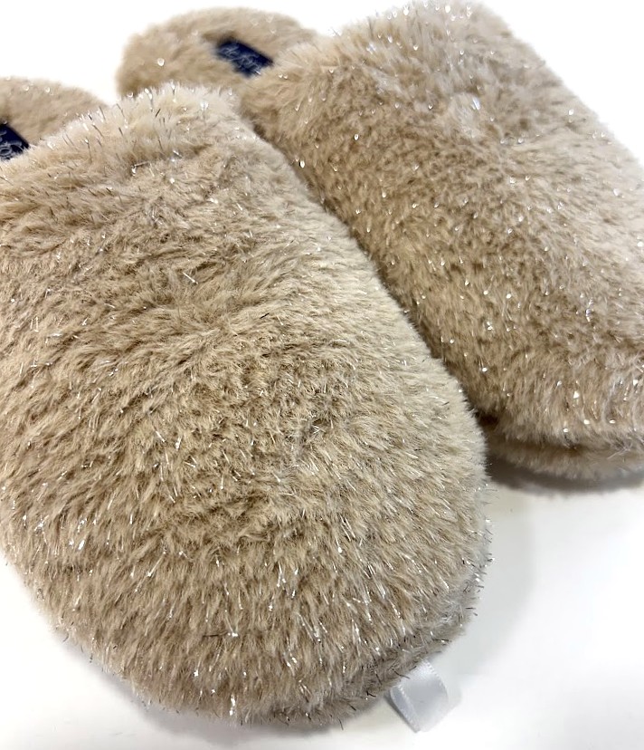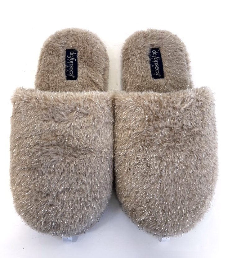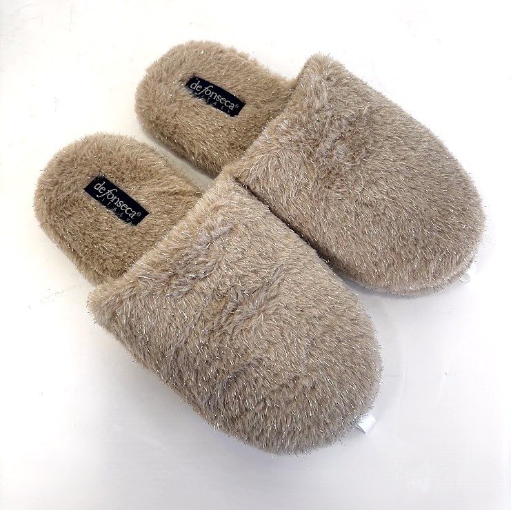 Chinelo de quarto com pelo,com palmilha almofadada e sola em borracha antiderrapante.