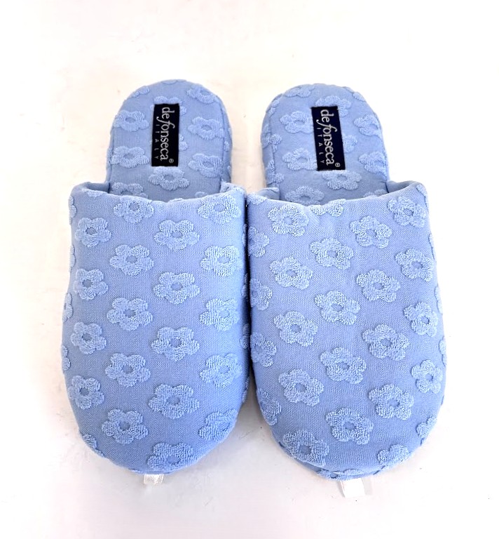 Chinelo de quarto todo a cor com flores em relevo,com palmilha almofadada e sola em borracha antiderrapante.
