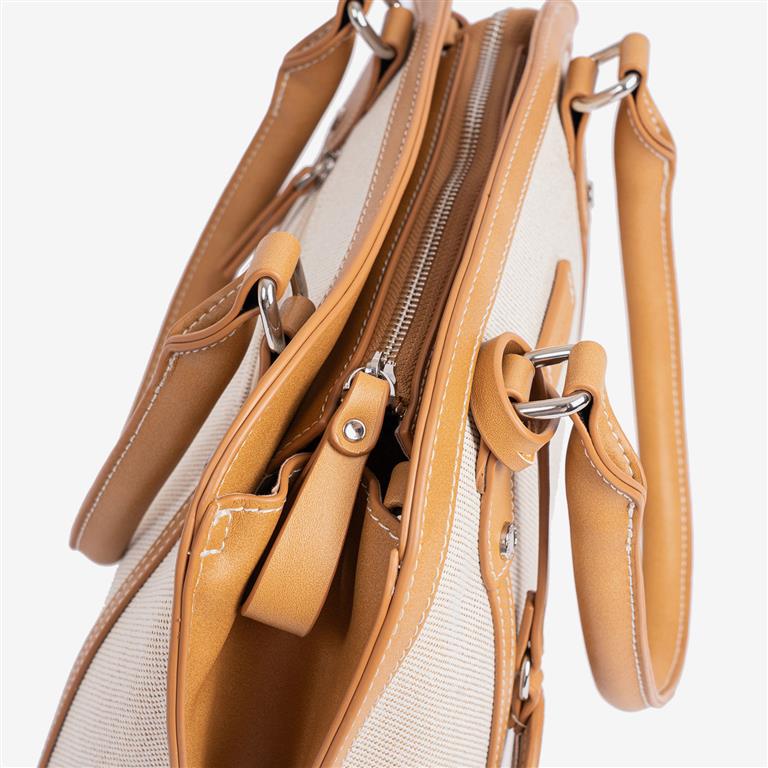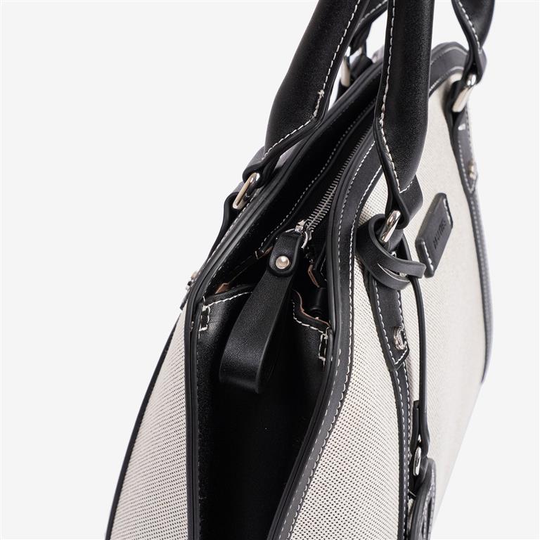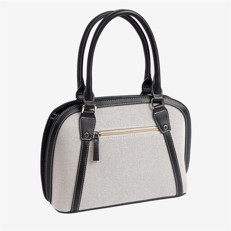 Mala senhora, um classico sempre intemporal, com alça dupla para tiracole. Acabamento em lona e couro sintético de alta qualidade. Interior com forro têxtil e bolso com fecho. Na parte de trás, possui uma divisão com fecho.