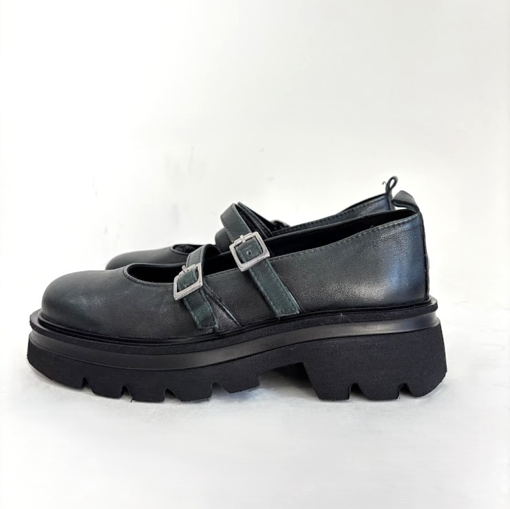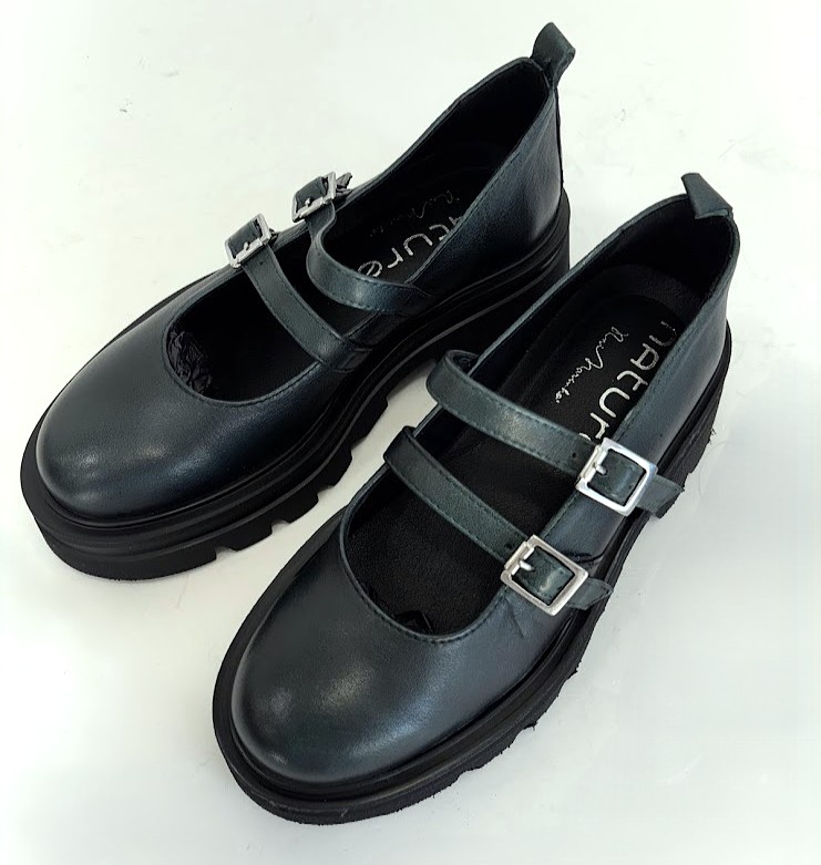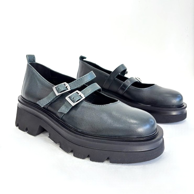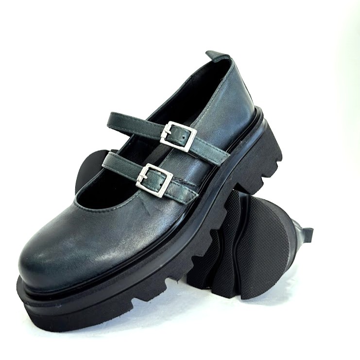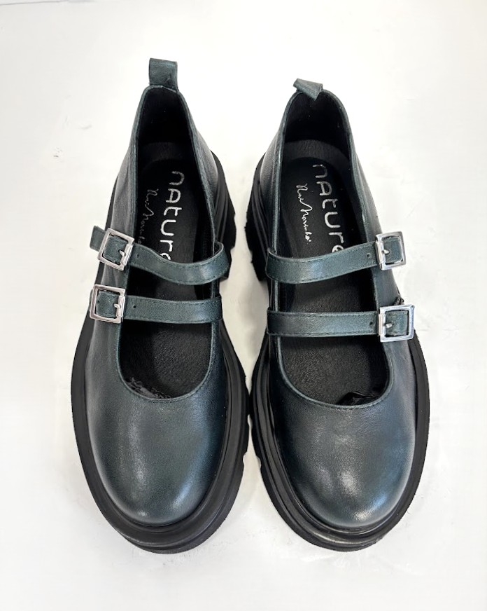 Sapato, sabrina senhora 100% fabrico português em pele verde , com palmilha almofadada, amovível, forma de aperta com fivela.
